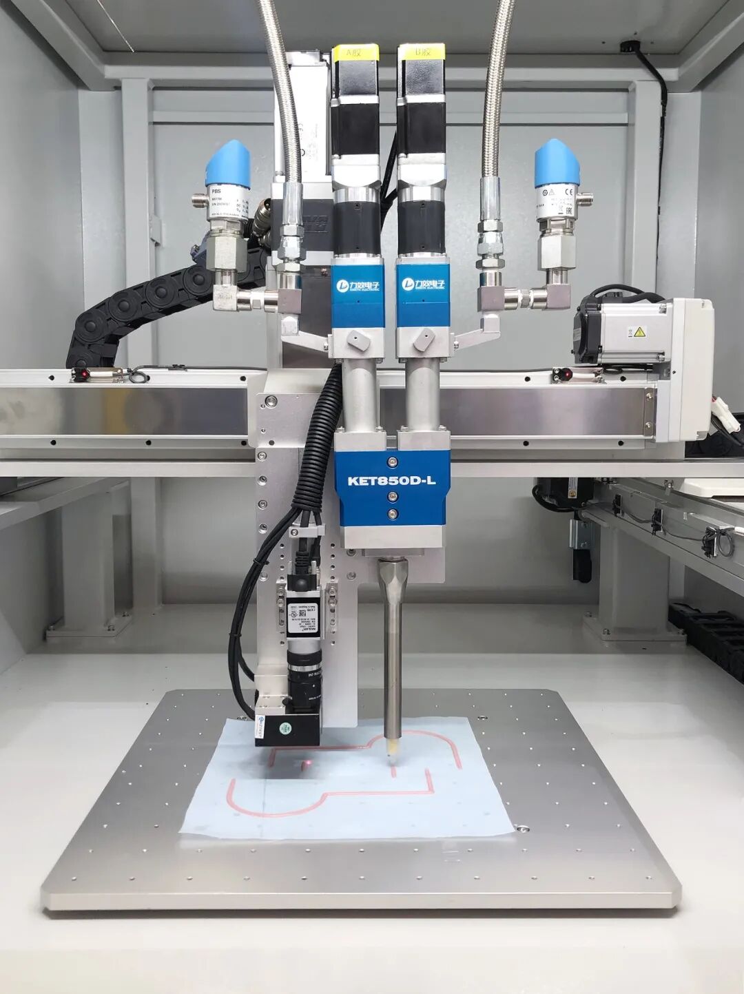 KS柜式機(jī)器人可以集成各類點膠閥、單雙組份泵送系統(tǒng)、等離子處理機(jī)等,具有具有多種模塊配置且靈活性強,廣泛應(yīng)用于各種精密自動化點膠領(lǐng)域。